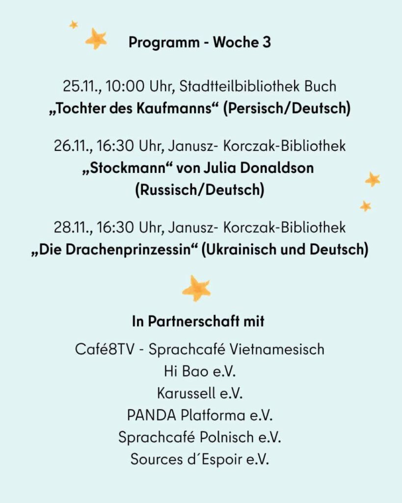 Від Karussel e.V. у бібліотеці Janusz-Korczak-Bibliothek (Berliner Str. 120, 13187 Berlin)